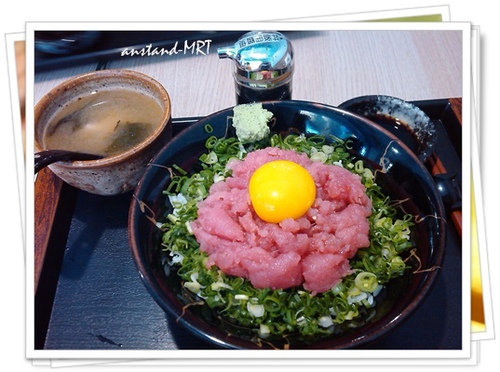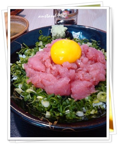 滿滿的蔥花跟生鮪魚碎肉塊,搭配上漂亮的月見,