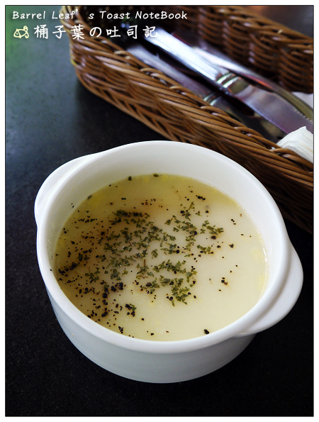一開始先送上附餐的濃湯~這濃湯聞起來感覺好像會很奶,但奇妙的是喝起來不會太奶,