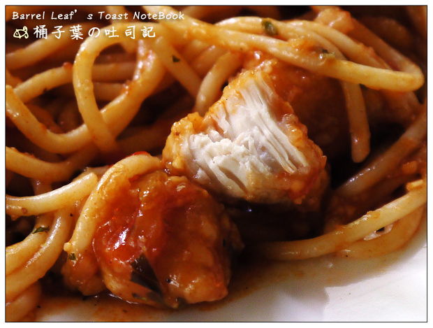 麵條沾附著帶著明顯香辣味的茄汁醬非常夠味~這辣真的不是小辣,而是會小噴火的辣,