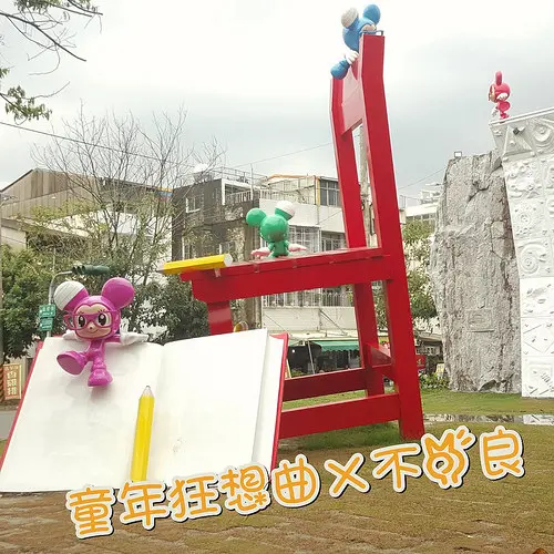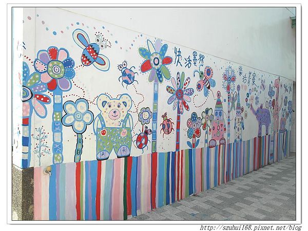 在旅客中心外頭的牆壁上有著可愛的貼圖,充滿著歡樂氛圍
