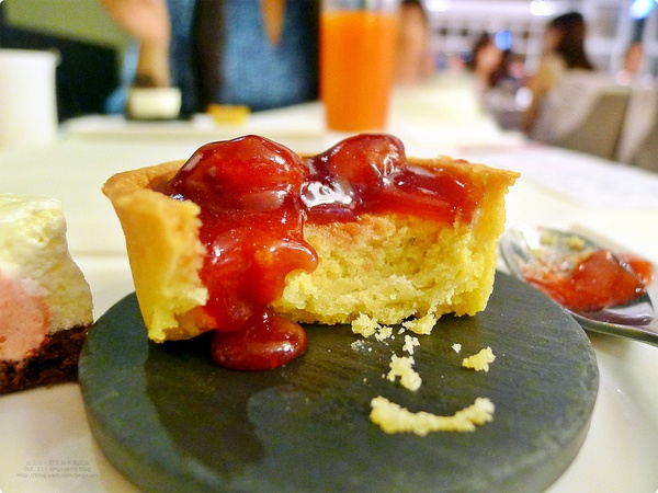 其綿密,而鮮紅色櫻桃醬在視覺上則相當吸睛,也算是一道可圈可點的甜品(可惜現已從菜單下架)。