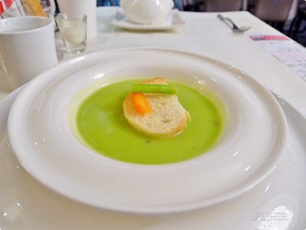 而圖下則為青漾蕈菇濃湯,以三種菇類搭配青豆熬煮,一口濃郁一口香醇,也算是營養豐富的濃湯。