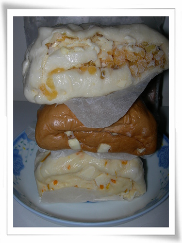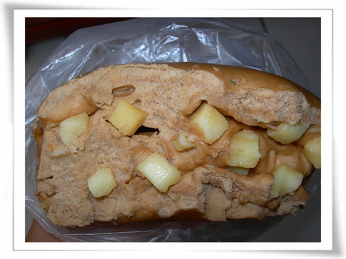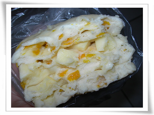 看看這剖面..一層南瓜籤麵皮一層起司丁,好熱鬧喔~~