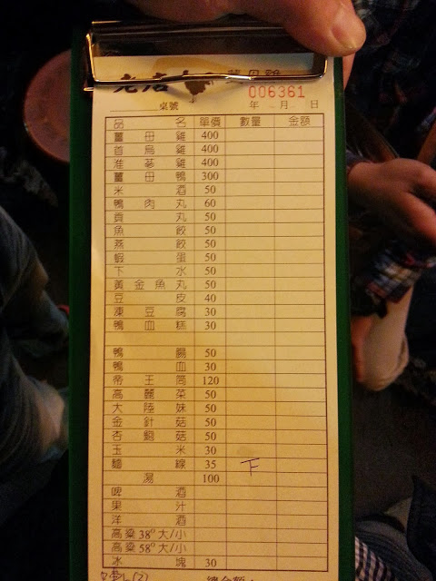 ▲這邊等候的時,快輪到用餐時,會先提前給菜單供顧客先行選擇,在就坐後便會很快的上上指定的菜色。雖說主打特色的薑母雞,但另外還有首烏雞、淮蔘雞、薑母雞來提供選擇,而其他的配料的部份也是相當多的,像必吃的鴨肉丸、下水、凍豆腐、鴨血糕、鴨腸、鴨血、特色的帝王筒、麵線等,蠻多道可供挑選。