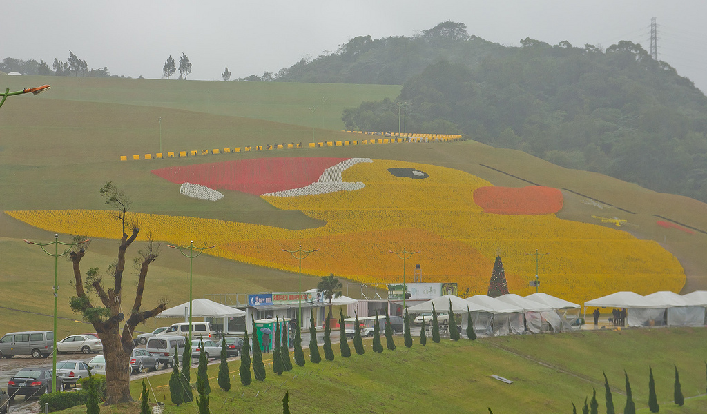 在擁恆文創園區集結上千人打造出來的巨型黃色小鴨地景藝術