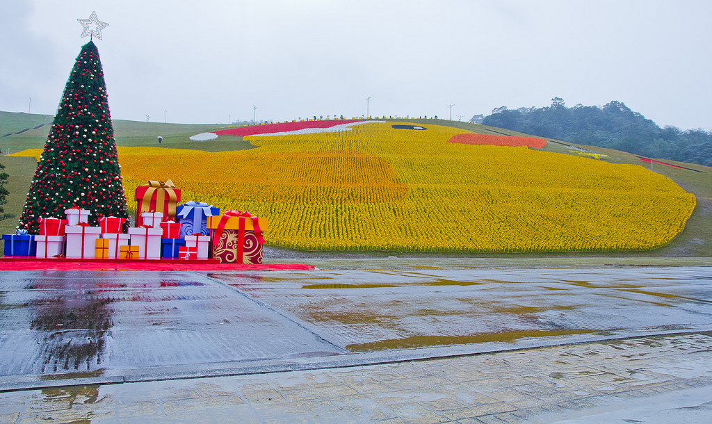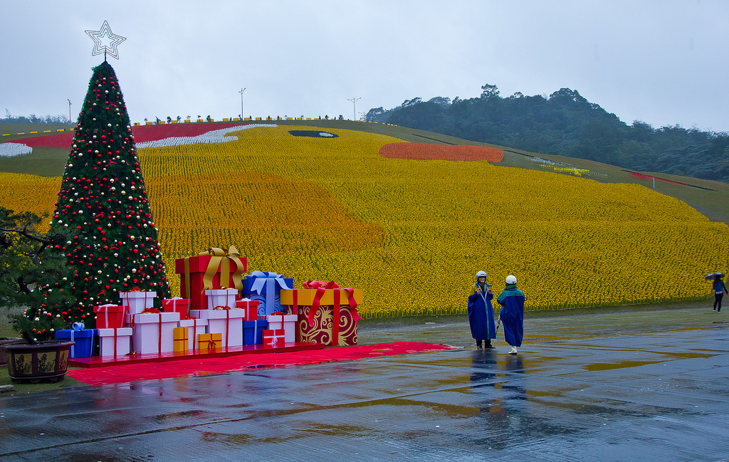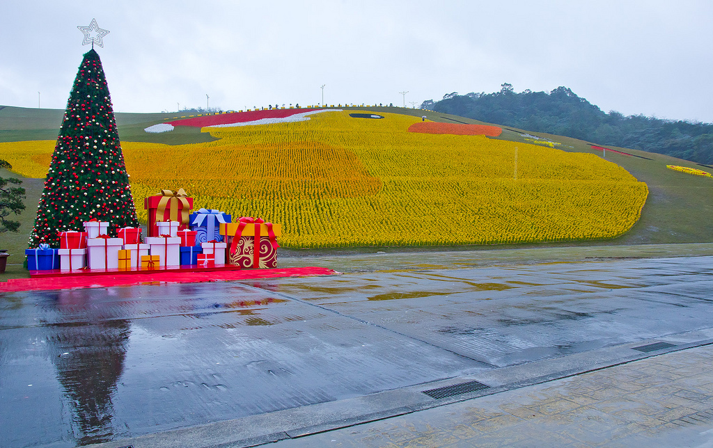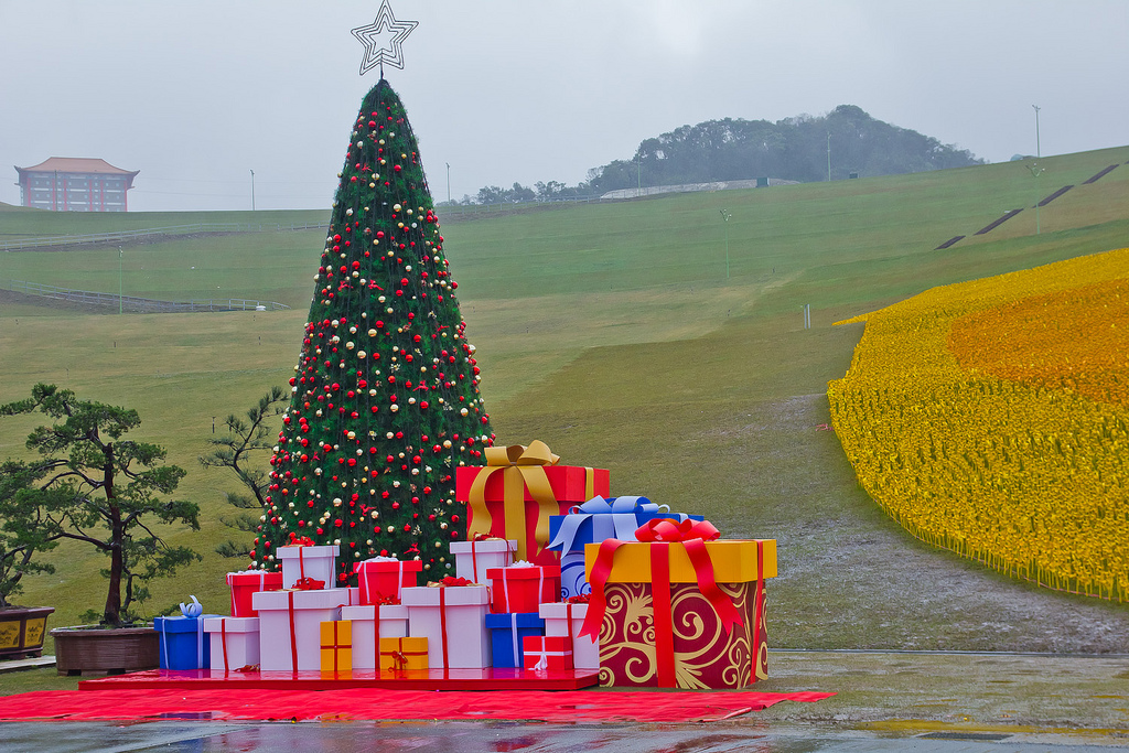 近期新增耶誕樹、大型禮物裝置等佈置會場