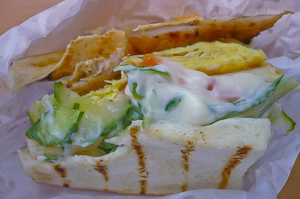 搭上豬排、蛋包、美奶滋、小黃瓜、蕃茄豐富的內餡