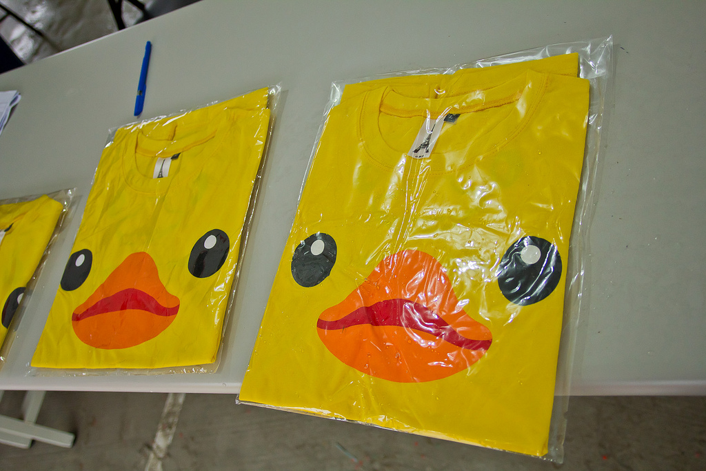 服務台也趕上小鴨熱潮,推出小鴨的T恤