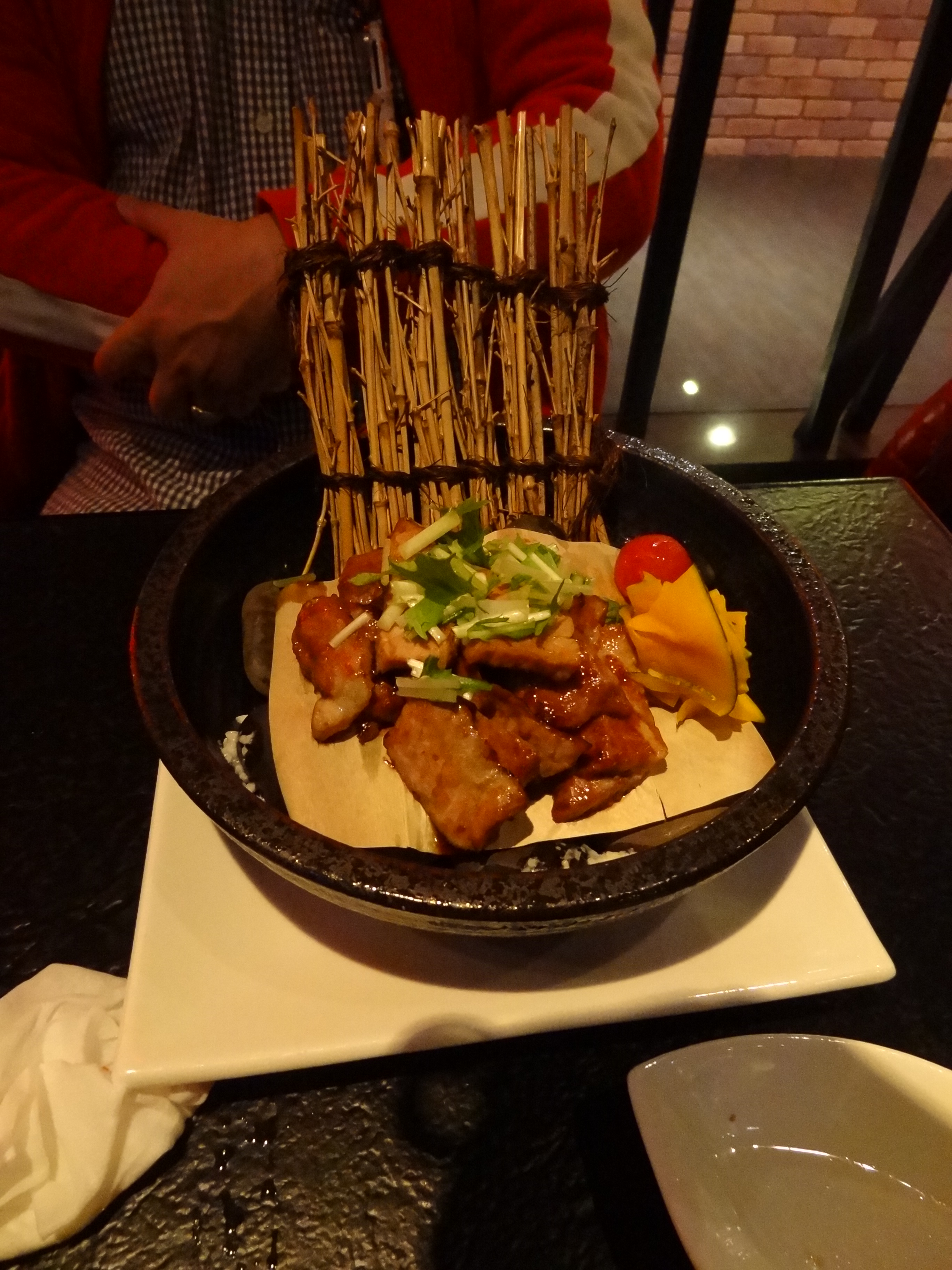 先生跟我同樣不敢吃生魚片也不吃牛肉,所以我們都點蒜香鮮蝦