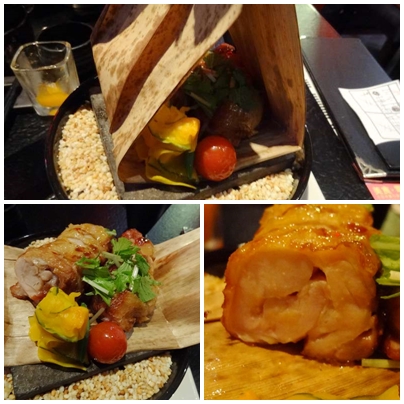 炒熱的小米栗有保溫的功效,打開粽葉,有雞肉捲還有爽脆甜的百香果木瓜片~ 搭配起來更是美味清爽