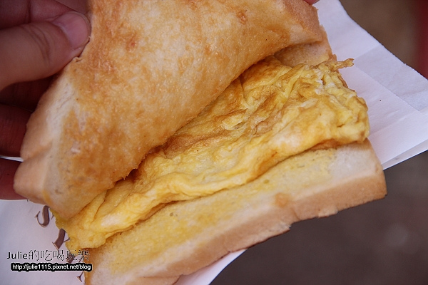 ↑用豬油煎的蛋,被一片花生、一片奶油吐司包夾著~
