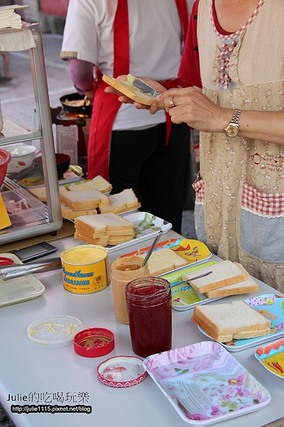 ↑就只有兩個人負責的攤位,一個負責抹醬料,一個負責煎蛋跟烤吐司。