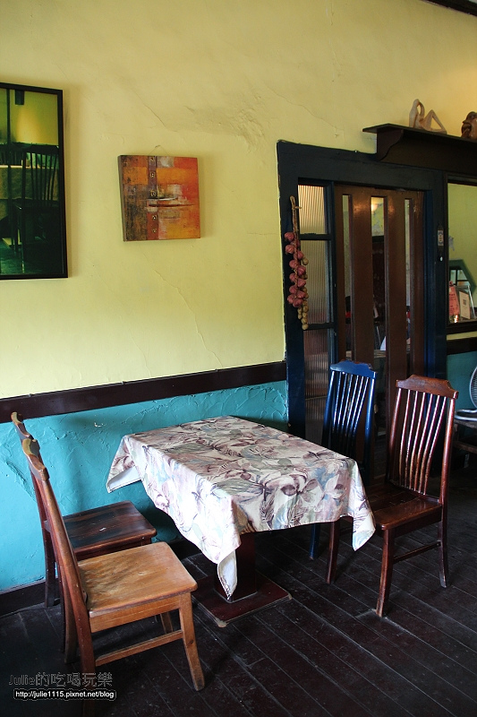 ↑我覺得牆面的配色挺美的,搭配很微妙的桌布跟椅子,復古風情不言而喻~