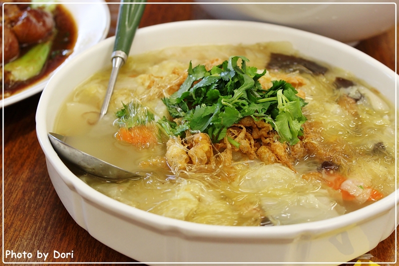 香滷白菜的口味和香滷筍絲一樣都是輕淡的口味,還添加了粉絲在其中,另外值得一提的是上頭香菜下的蛋酥,油炸過後還保有酥香口感。