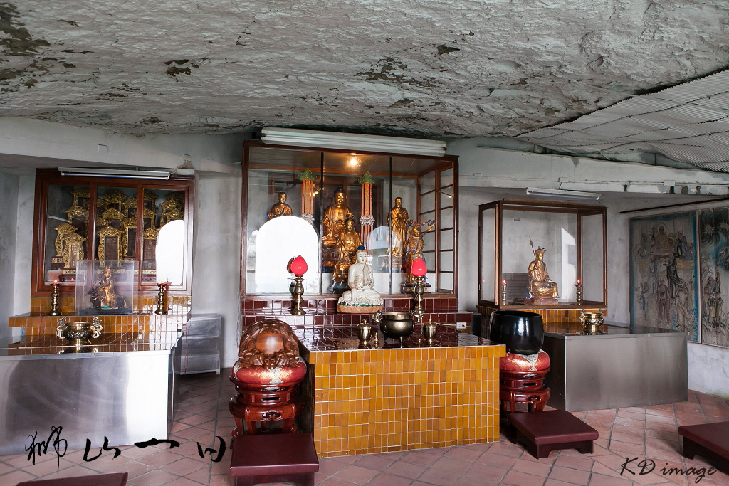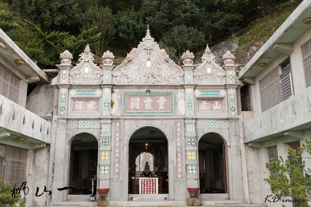 蝴蝶等等還另外取了稱號,剎是有趣。靈霞洞之所以特別的地方於,與一般廟宇不同的內外觀,看到了靈霞洞的指標往上一轉,一時還分辨不出來特別之處為何,兩邊為水泥色建築的本體讓人誤以為是哪幢民宅,一拐個彎才知道順山壁之勢建造的靈霞洞,有著相片上所呈現的「巴洛克」式建築。