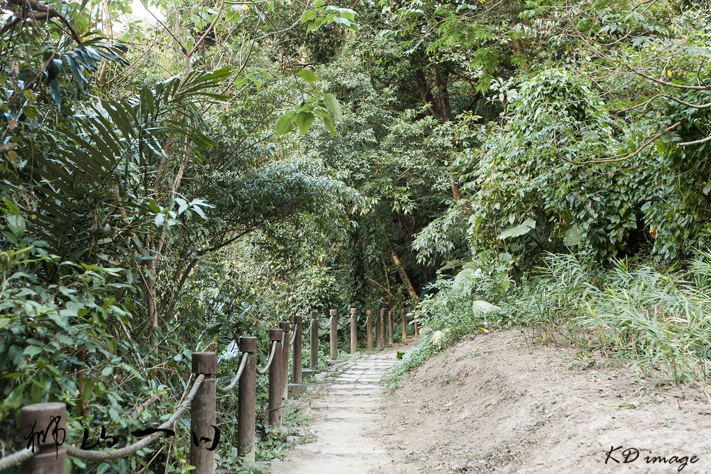 雖是規劃完善的步道,但並沒有太多人為破壞的痕跡,相反的一切都很和諧的座落著涼亭、廟宇等建築,草木也沒刻意修剪的自然生長著,有趣的生態動物介紹牌每隔一段距離便有一個,蝸牛、螳螂