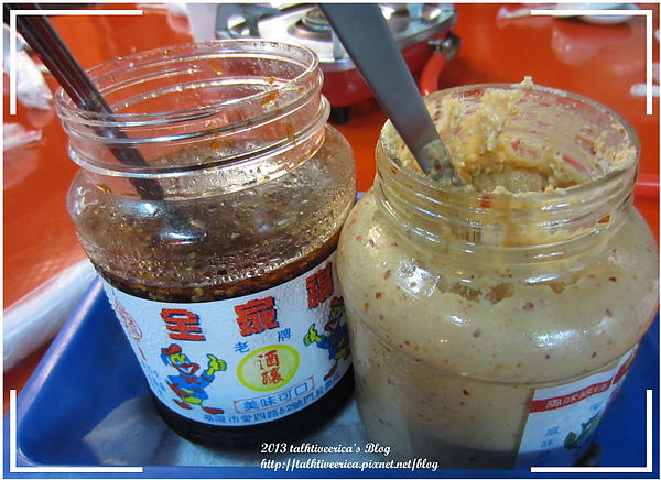 接著,醬料上桌,有必備的豆腐乳醬與辣椒醬