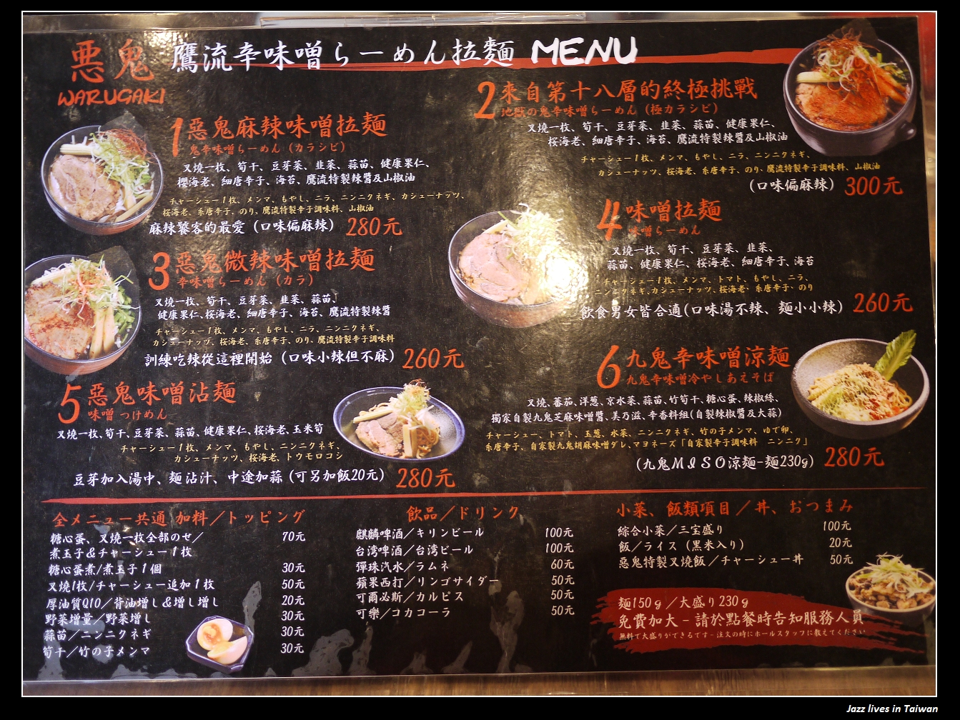 惡鬼拉麵除了麻與辣之外給我的感覺與其他拉麵店最大的差異就是配菜與小菜,