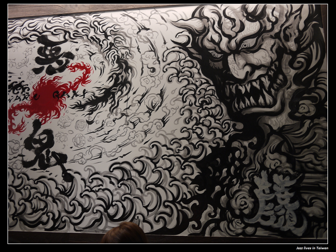 牆上也是很大一幅的惡鬼畫, 小弟沒有廣角鏡, 只能手動的貼圖連接起來, 如下, 願意贊助小弟廣角鏡頭的捧油也可以在下方留言給我, 感恩~