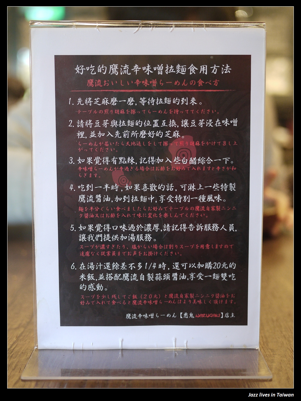 特製鷹流醬油, 還有店家的拉麵建議食用方法,