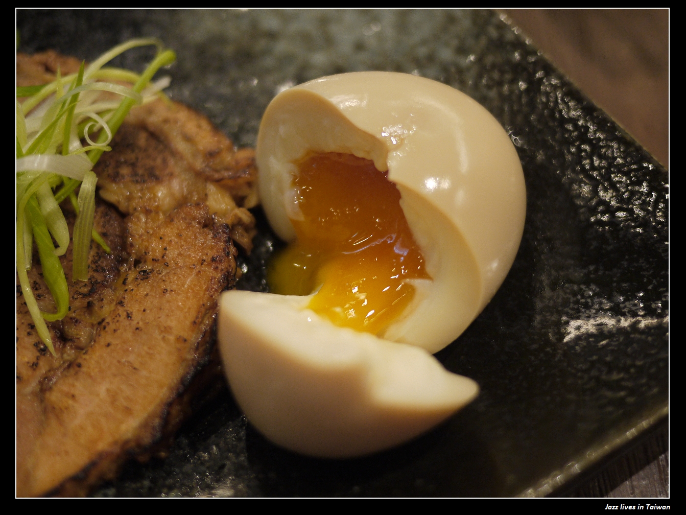 火侯恰恰好的糖心蛋, 另外要說的是, 叉燒不是我要的, 是萬年徵女友的朋友Y先生想要吃的, 真是肉食控ㄚ~~~