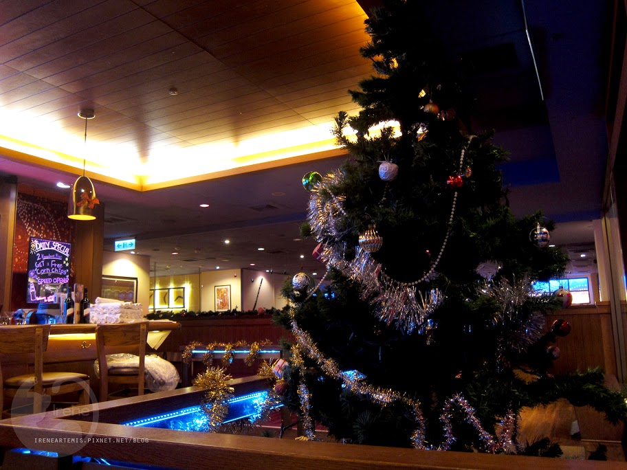 店內充滿著各色的霓虹光,看起來就像來到美國電影裡的小酒吧,正好接近耶誕節,