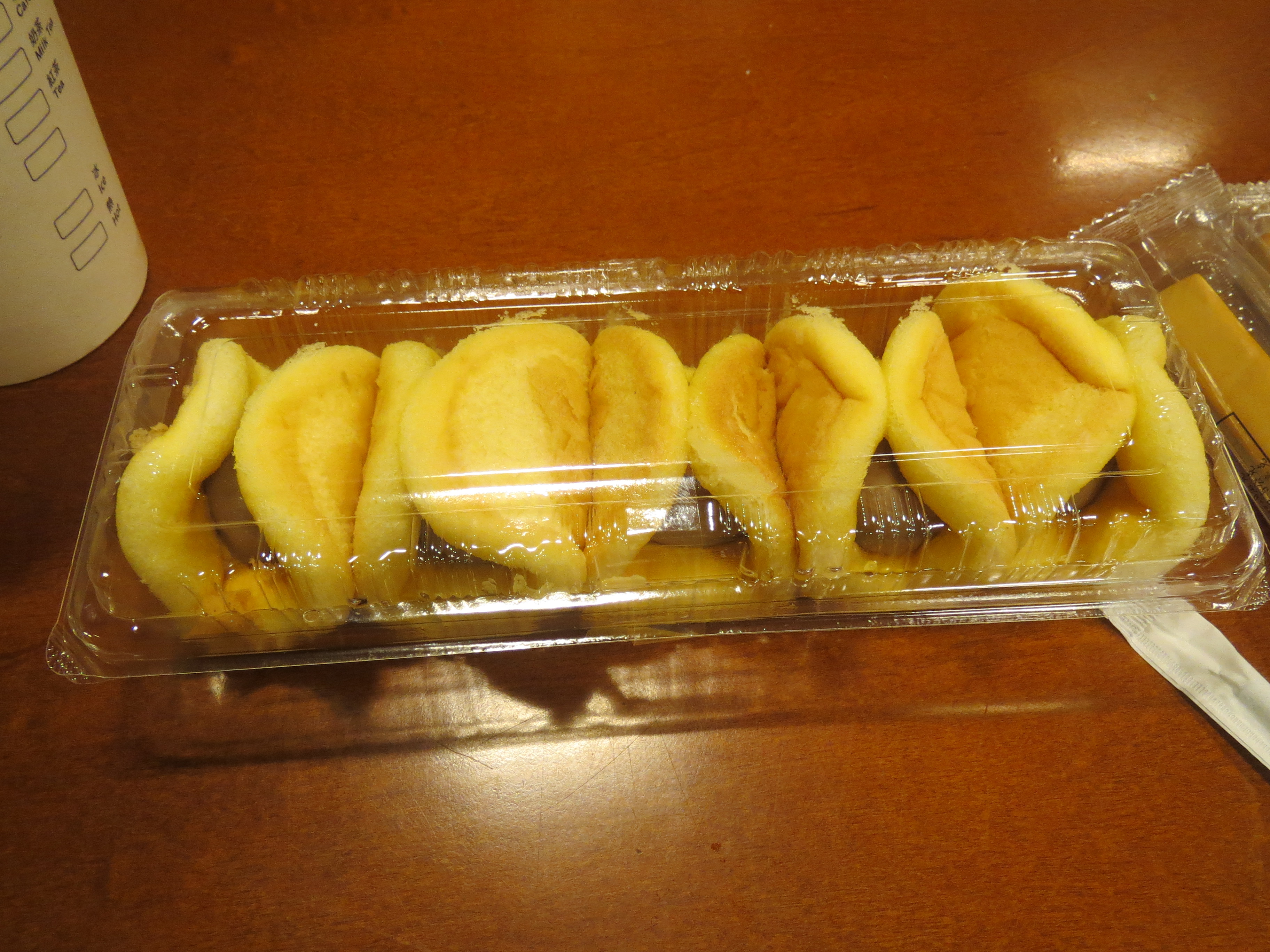 基於兌換券不能找零,我也捨不得花太多錢的緣故,我另外選了這兩枝牛奶棒來填補之間的差額。儘管價位便宜,但它的酥脆度是無庸置疑的,也感覺得出來它有牛奶的成分。更讓我覺得用心的是,店家還特地在包裝上標示了製造原料和熱量表,一般的麵包店通常不會注意到這種小細節
