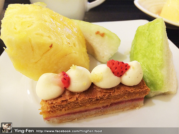 吃到最後真的好飽,他們的甜點都小小份量吃起來剛剛好,跟水果放在一起很精緻,甜點只吃了一個,因為吃不下了,下次來在吃別的,吃飽飽多走路回家去囉。