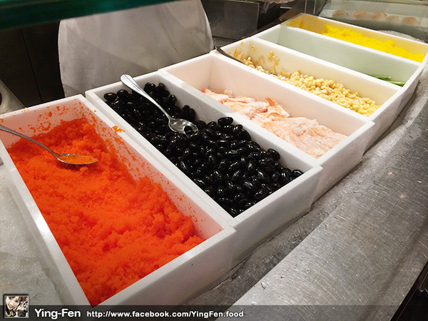 這些是包手卷的料,跟師傅說要加哪一個,師傅會包給你,手卷現場包所以要等一下。