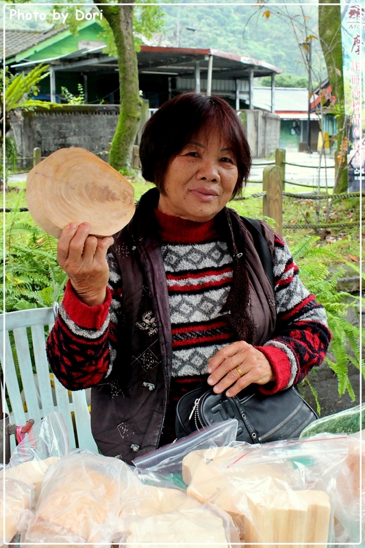附近有販賣小物品的攤販,其中一攤的老闆娘手拿著圓形檜木,應該算是當作傢飾用品,檜木的味道非常香。