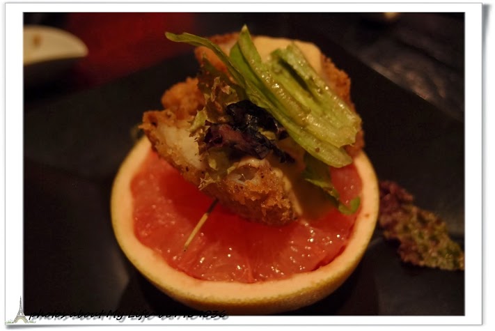 銀鱈葡萄柚~肉質細緻的銀鱈以酥炸方式而成,搭配新鮮葡萄柚盅呈現~
