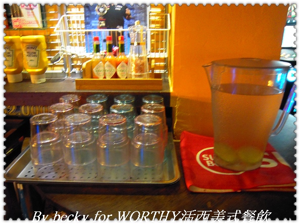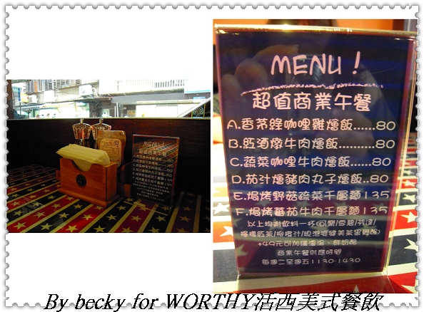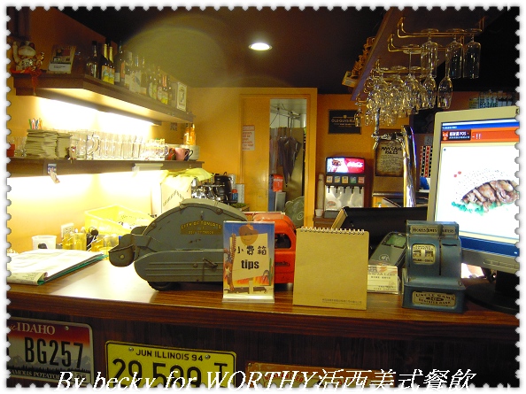 店裡空間位子還算大,牆壁上裝飾著美國的車牌,燈光是以略柔和的昏暗,還有二台液晶電視,播放著影集,連洗手間也很美侖美煥的。