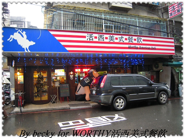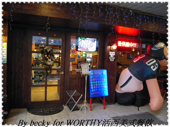 店家位於新埔捷運站2號出口走路約10分鐘左右,還不算難找,走進巷子後遠遠就看到這隻很引人注目的美式足球充氣娃娃。