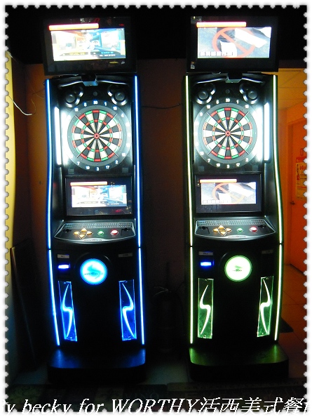 在角落有二台射飛鏢機是人氣之一,旁邊還有飛鏢瘋人排行榜,老闆也是榜上人之一。