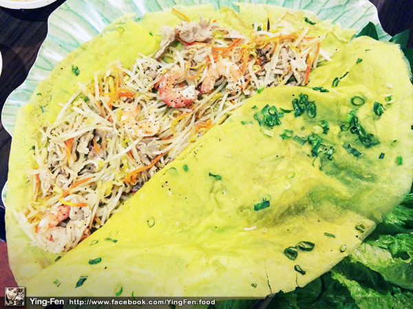 ●我在網路上找到越式黃煎餅教學,可以回家自己製作,大家以為黃煎餅是麵粉做的,其實是在來米粉、薑黃粉、水、一定要加椰奶、(內餡生菜、肉、蝦子...等)。http://video.ytower.com.tw/Video/Play/2ad36d61-64f9-448a-8b6d-4ff5d9eb6a1d/%E8%B6%8A%E5%BC%8F%E9%BB%83%E7%85%8E%E9%A4%85