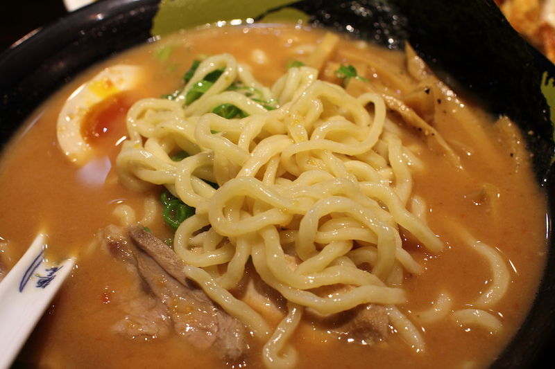 值得贊許的是麵條使用帶著波浪卷的粗麵,雖然我跟服務人員要求麵條要煮硬一點,可惜送上的拉麵麵條還是太軟,麵心都已軟爛,沒有筋道,煮麵的火侯實在還要加強。