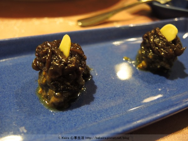 田螺冷盤,上頭是烤洋蔥,淋了橄欖油,調味不錯,甜甜的又有一點辣味,可是吃得到一點螺肉味。