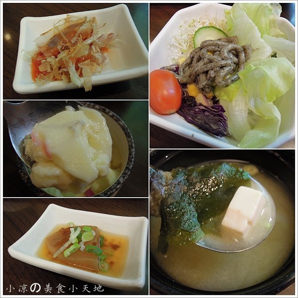 搭配著清脆的生菜,涼拌的魷魚,滑嫩的蒸蛋,普普的味噌湯和醃漬蘿蔔!