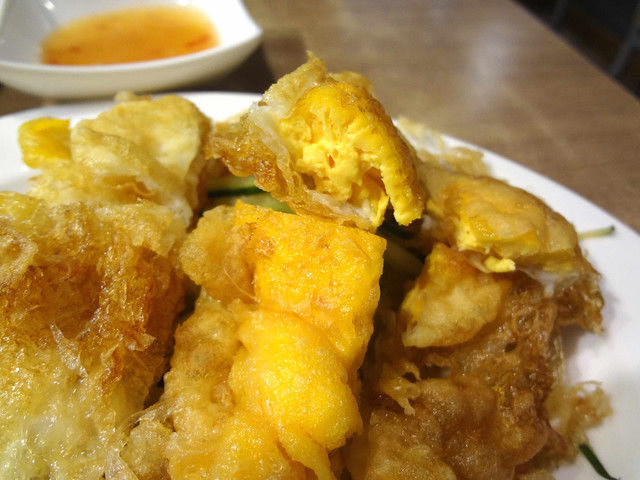 將蛋炸的酥酥脆脆~放涼後沾上店家特製醬料