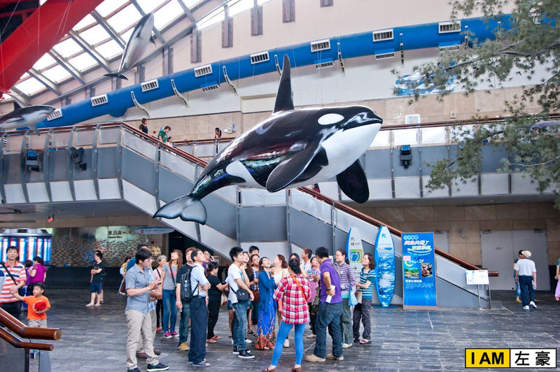 館前的迎賓廣場也有大型的鯨魚池 !