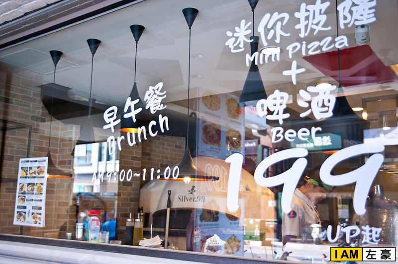 大玻璃窗上打這"早午餐"與"迷你披薩+啤酒"的優惠