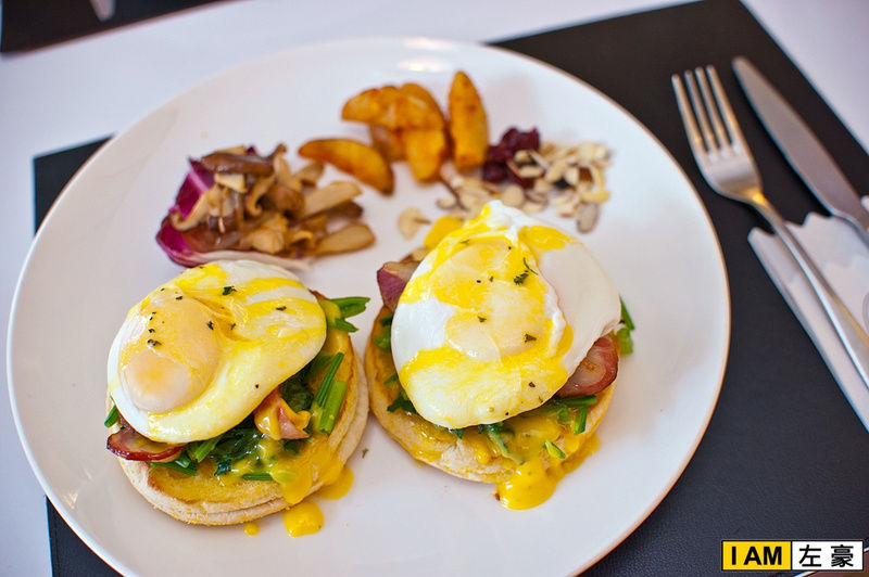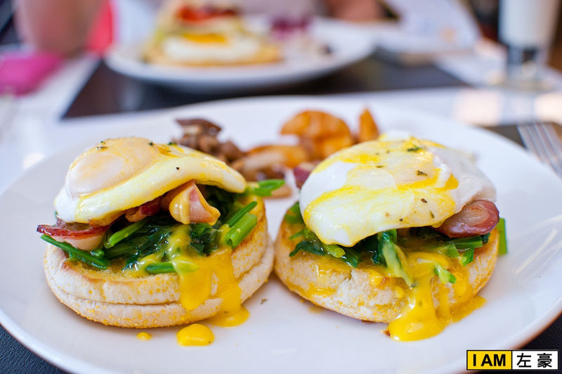 五分熟的水波蛋一次就給了二顆,加上菠菜與瑪芬