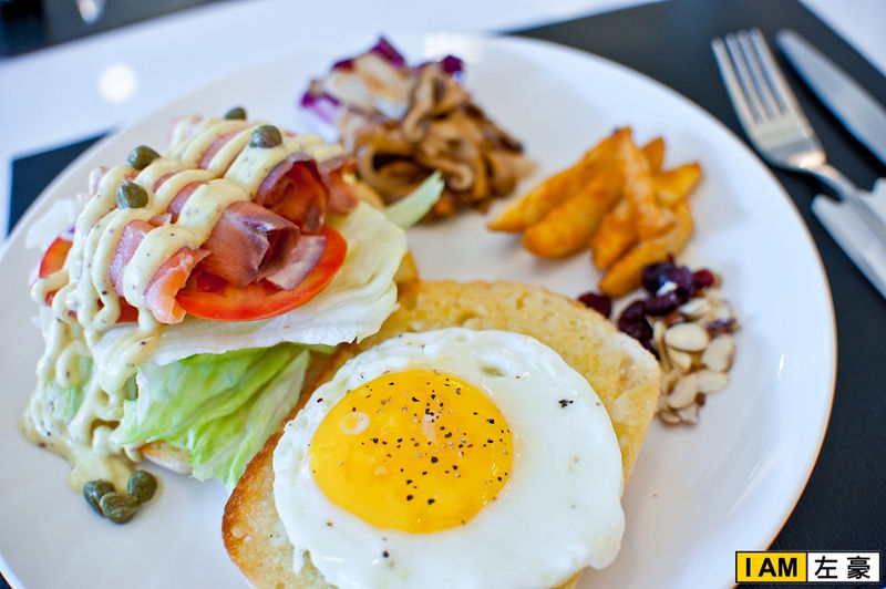 滿滿的煙燻鮭魚加上法式蜂蜜芥末醬,口味濃郁又