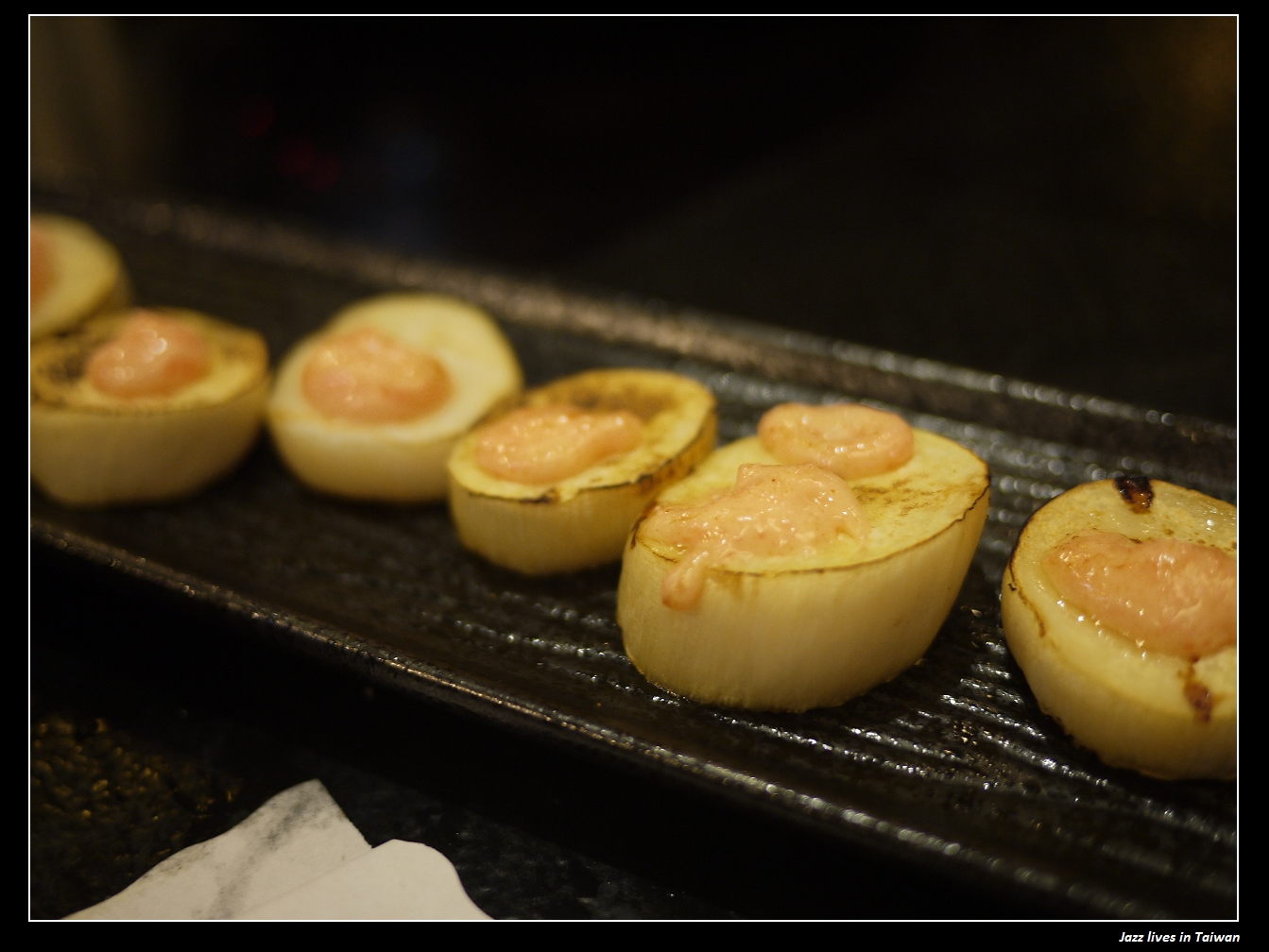 烤杏鮑菇, 火侯還是烤得不錯, 上頭的是明太子醬, 這個一般應該很搭的味道, 但是這家搭配起來的口味怪怪的!