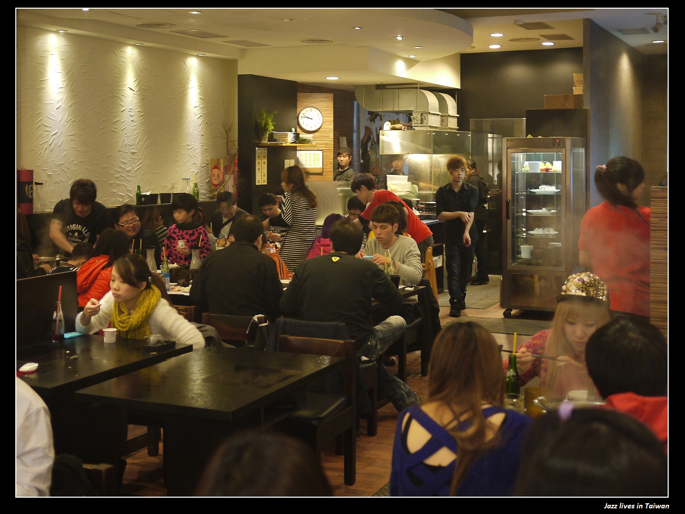 餐廳內的實景, 最裡面的則是現場烤物區,