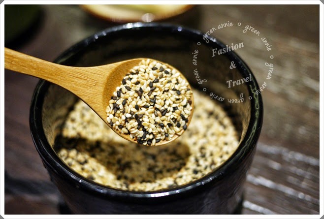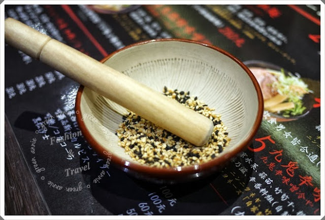 剛剛的說明說,可以先把桌上的芝麻磨碎後,放進拉麵中