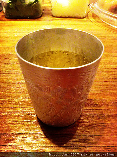 薄荷茶的杯子就是那種泰式料理會看到的銀杯