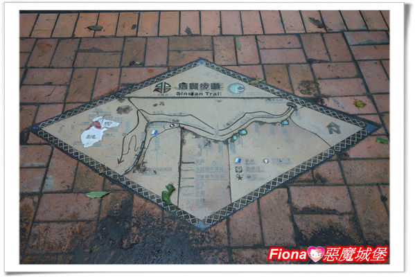 「信賢吊橋」另一頭的地面上有「信賢步道」地圖,整個步道約2公里,並不算長,但令人驚喜的是沿途竟然有10個瀑布耶!!