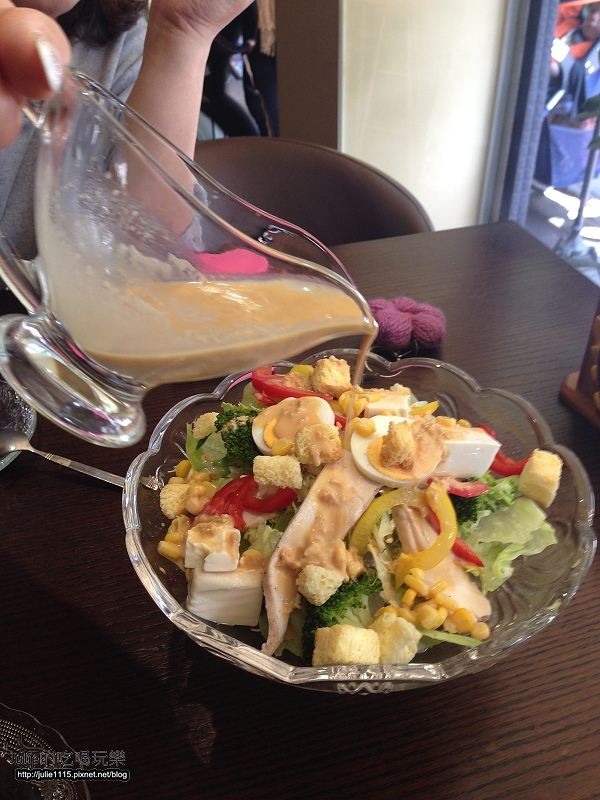 ↑請J媽幫忙倒了沙拉醬,沙拉醬是有點胡麻MIX和風醬的感覺。