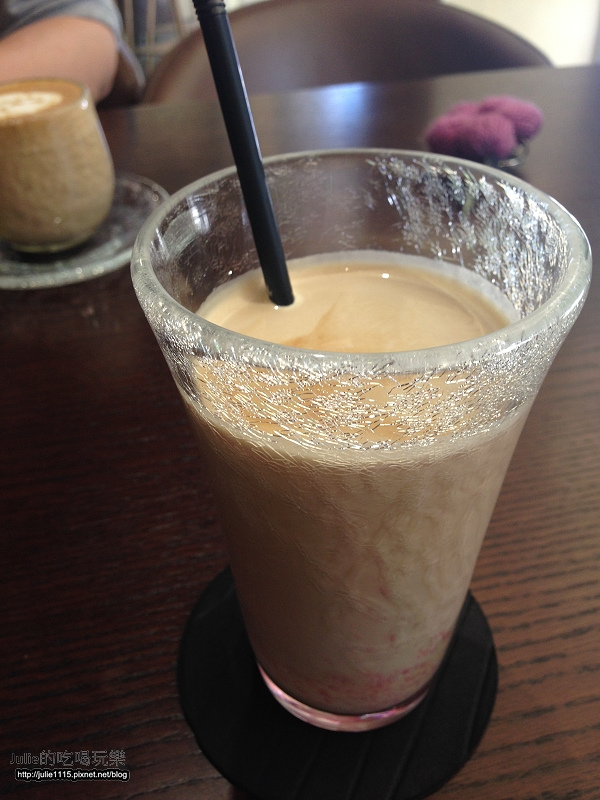 ↑這是JULIE點的冰拿鐵,因為沒有奶泡所以不能拉花~真是殘念了!